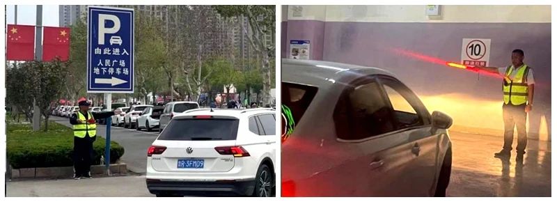 “提供舒适便利的停车服务”。人民广场项目专门增设大量道路及停车场指示标识,每日30余名引导服务人员不间断维持交通秩序,从人民路开始,分南北方向,对过往车辆进行指挥分流,对游客车辆进行全程引导,确保游客停车方便,出行顺利。
